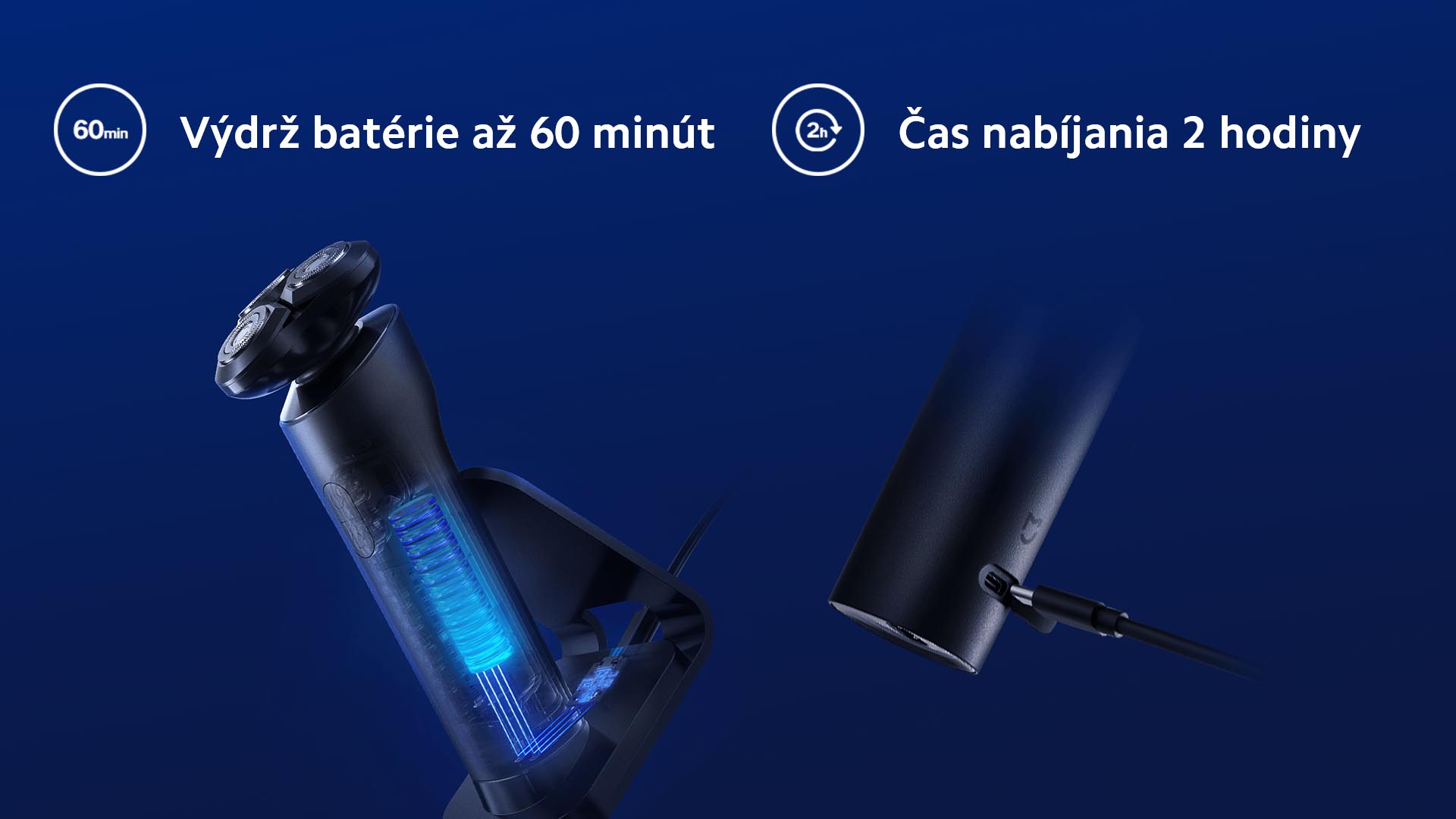 Batéria je takmer vybitá, ale potrebujete sa rýchlo oholiť? Nemusíte sa báť, Xiaomi Electric Shaver S700 vám umožní holenie aj počas nabíjania. Strojček môžete nabíjať prostredníctvom zabudovaného USB-C konektoru, alebo elegantného nabíjacieho stojanu. Dĺžka nabíjania činní 2 hodiny. Veľká kapacita batérie umožňuje až 60 minút holenia.