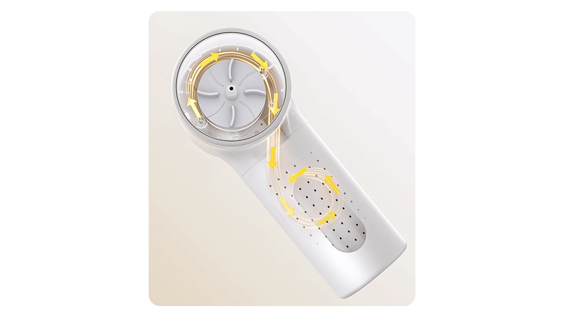 Špeciálny dizajn vzduchového kanála v tvare čísla 8 vytvára cyklónové prúdenie vzduchu, ktoré zaručuje jednosmerný ťah a zabraňuje spätnému unikaniu žmolkov a vlákien.