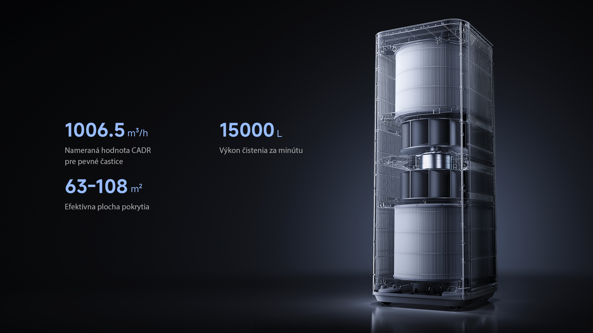 *99,99% je miera filtrácie pevných častíc PM1, PM2.5 a PM10 v priebehu 1 hodiny. Údaje pochádzajú z Národného centra pre kontrolu a testovanie kvality produktov na čistenie vzduchu v Guangzhou Institute of Microbiology Group Co., Ltd.