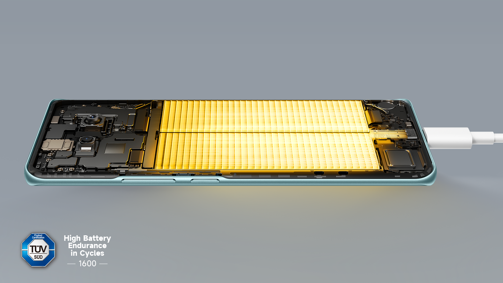 Zariadenie disponuje batériou s kapacitou 5520 mAh a podporuje 45W rýchle nabíjanie. Vďaka viacnásobnej ochrane si batéria zachováva viac ako 80 % svojej kapacity aj po 1 600 nabíjacích cykloch.