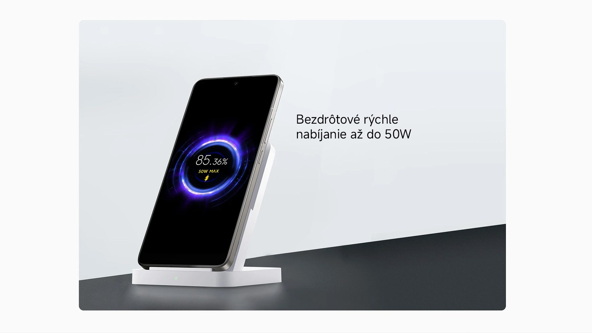 *Pre dosiahnutie maximálneho nabíjacieho výkonu 50W sa odporúča použiť nabíjací adaptér Xiaomi 67W Charging Combo (typ A) alebo nabíjací adaptér Xiaomi 120W Charging Combo (typ A). Iné nabíjačky a dátové káble nemusia byť kompatibilné, čo môže mať za následok pokles výstupného výkonu alebo blikajúce svetelné upozornenie.