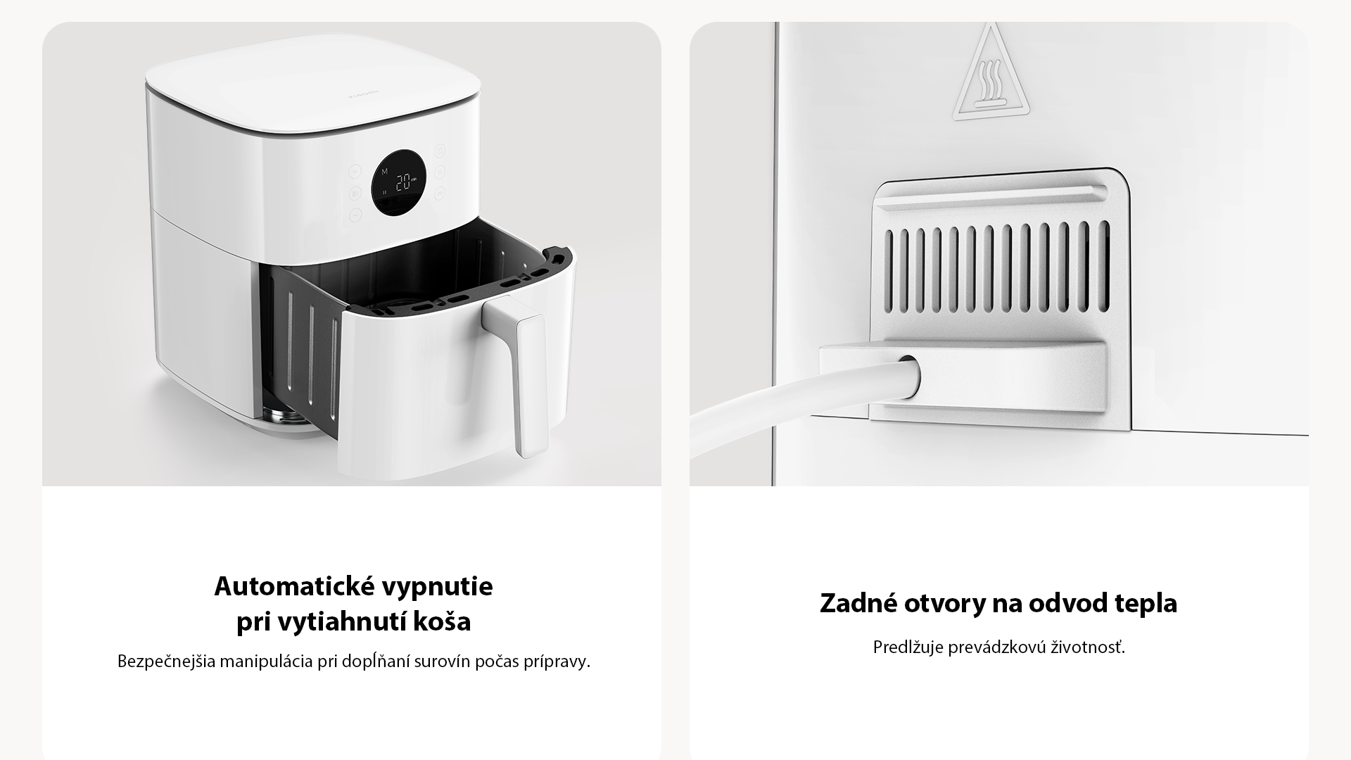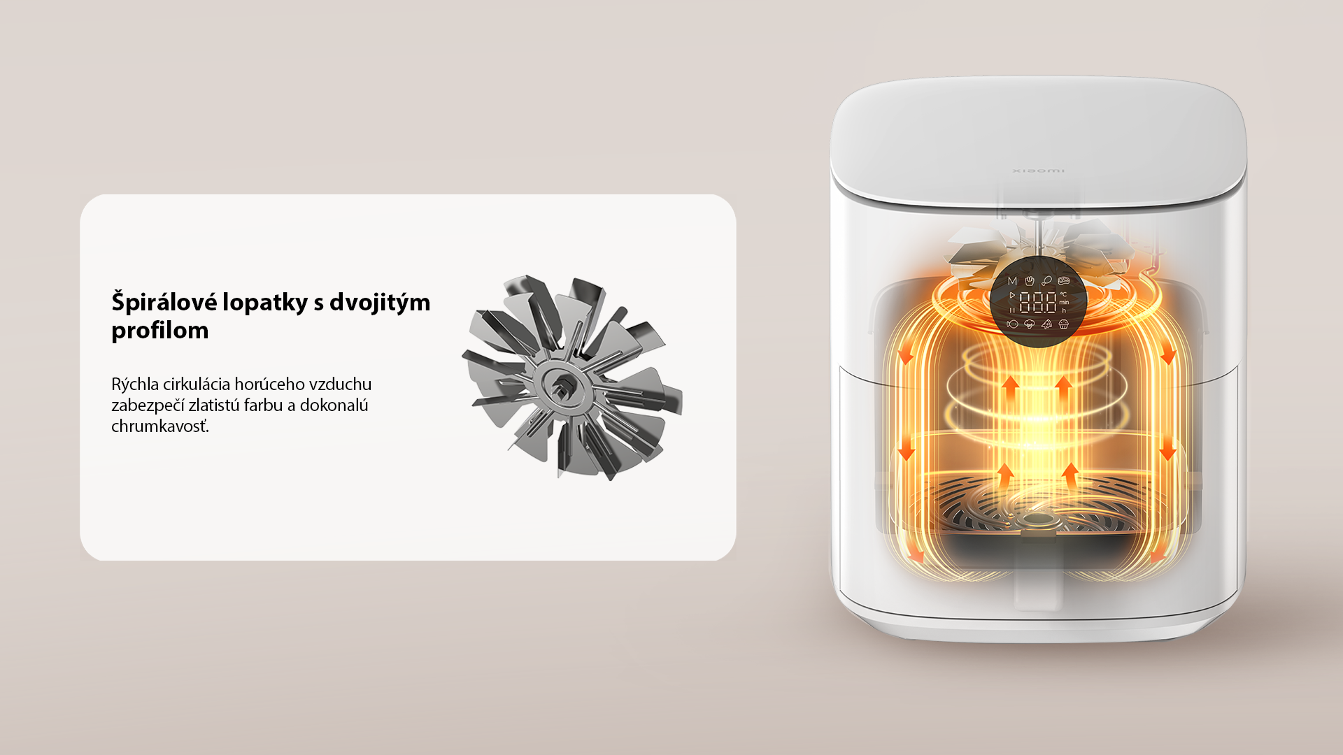 *Hranolky pripravené v teplovzdušnej fritéze Xiaomi Air Fryer 6.5L obsahujú o 88,3% menej tuku a mastnoty v porovnaní s bežnými fritézami. Údaje testované výrobcom.