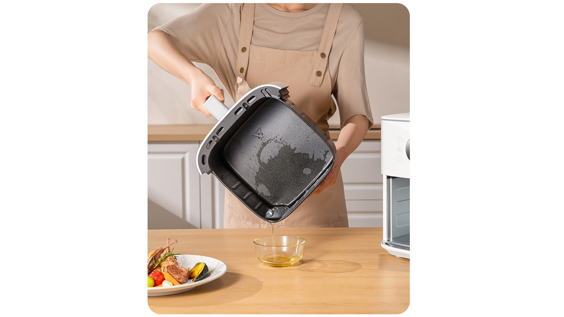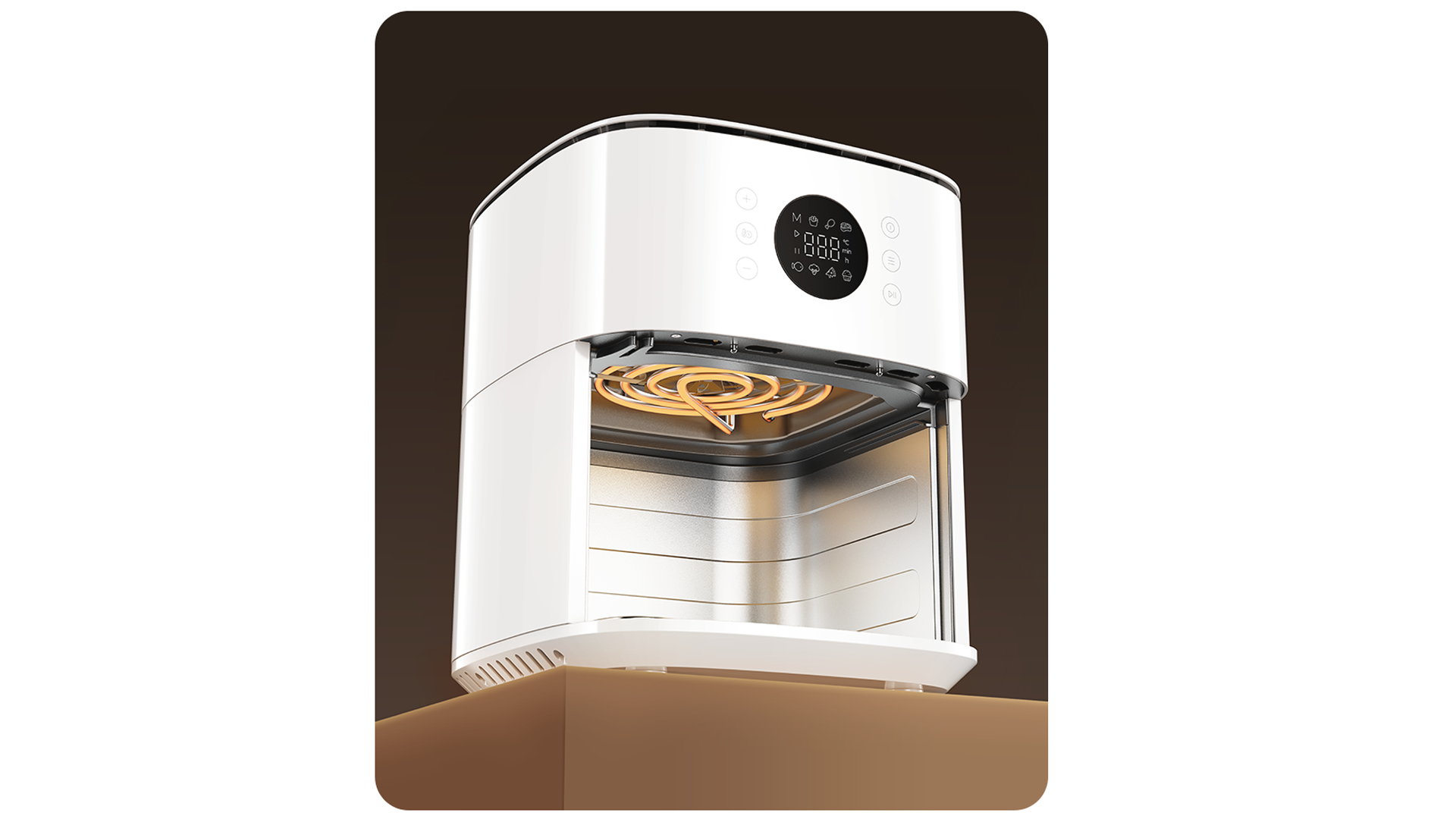 Doprajte si zdravšie pokrmy vďaka pečeniu pri teplote 210°C, ktoré vaše jedlo rýchlo opečie do chrumkava aj s minimálnym množstvom tuku. V porovnaní s tradičným vyprážaním môžete dosiahnuť až o 88,3% menej tuku než pri vyprážaní v oleji.