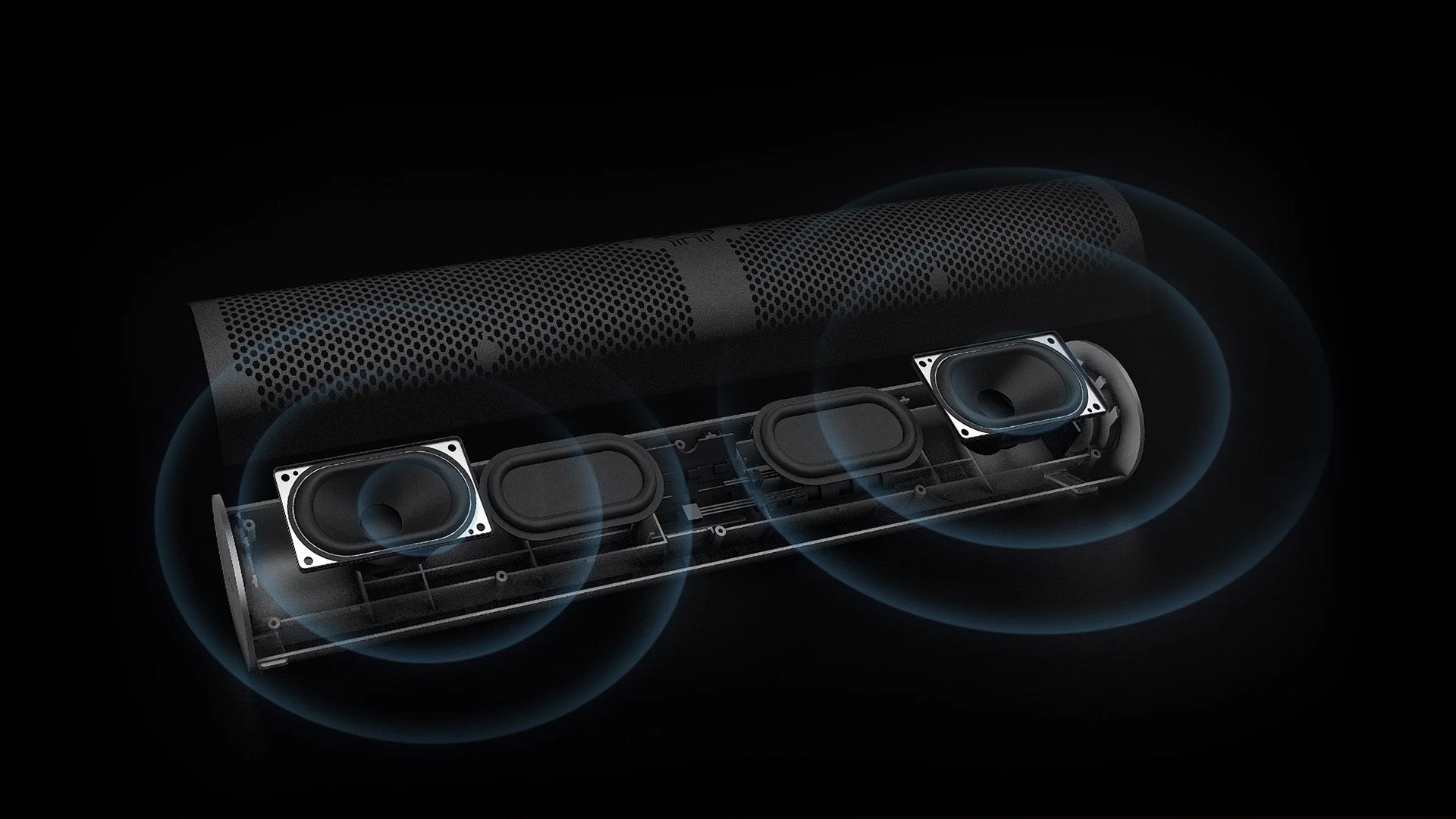 Symetrické rozloženie dvojice reproduktorov s vnútornými vzduchotesnými komorami, minimalizuje rušenie kanálov a prináša bohatú a vrstvenú zvukovú kulisu pre pohlcujúci stereo zvuk, ktorý poteší vaše uši. Umožňuje tiež presnejšiu identifikáciu polohy zvuku pri hraní hier.