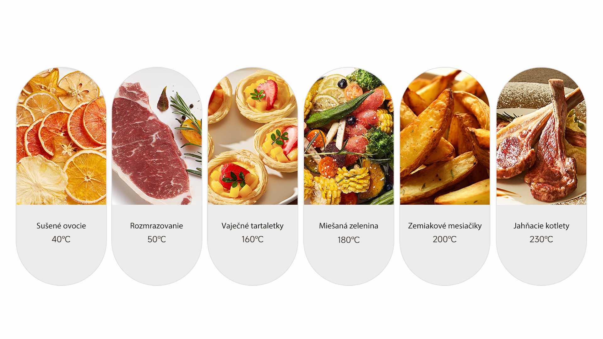 Teplovzdušná fritéza dosahuje maximálnu teplotu až 230°C na pečenie chrumkavých pokrmov, ale využiť ju môžete aj pri nízkych teplotách napríklad na rozmrazovanie, kvasenie a sušenie ovocia.