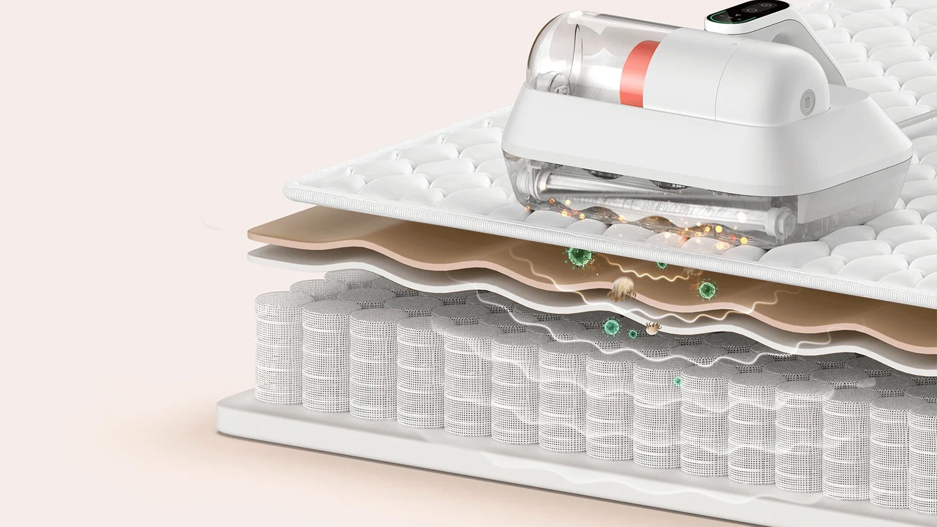 UV svetlo s vlnovou dĺžkou 254 nm ožaruje tkaninu posteľnej bielizne, čím narúša bunkovú štruktúru baktérií a roztočov. Účinne sterilizuje a likviduje roztoče pre pokojný spánok. Vysávač je doplnený aj ultrazvukovou technológiou pre komplexnú ochranu pred roztočmi a alergiami. Bezpečnostný mechanizmus snímajúci vzdialenosť, automaticky vypne UV svetlo, keď čistiacu plochu zdvihnete od povrchu, aby sa zabránilo úniku UV žiarenia.