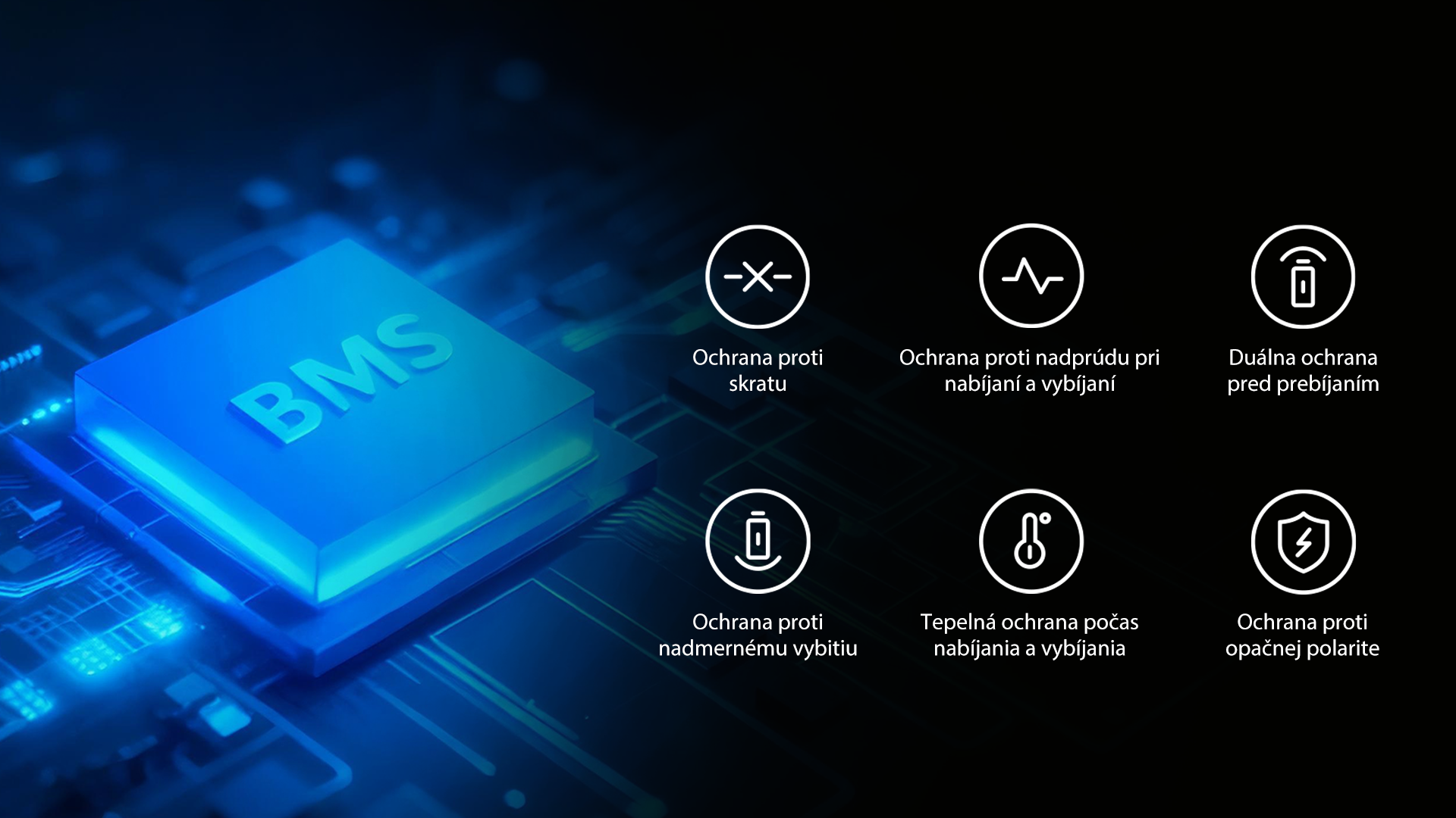 Ponúka až šesť ochranných mechanizmov, ktoré prešli prísnymi testami bezpečnosti a stability (Ochrana proti nadmernému nabíjaniu / Ochrana proti nadmernému vybíjaniu / Ochrana proti prepätiu / Ochrana proti prehriatiu / Ochrana proti skratu / Ochrana proti nadmernému prúdu).