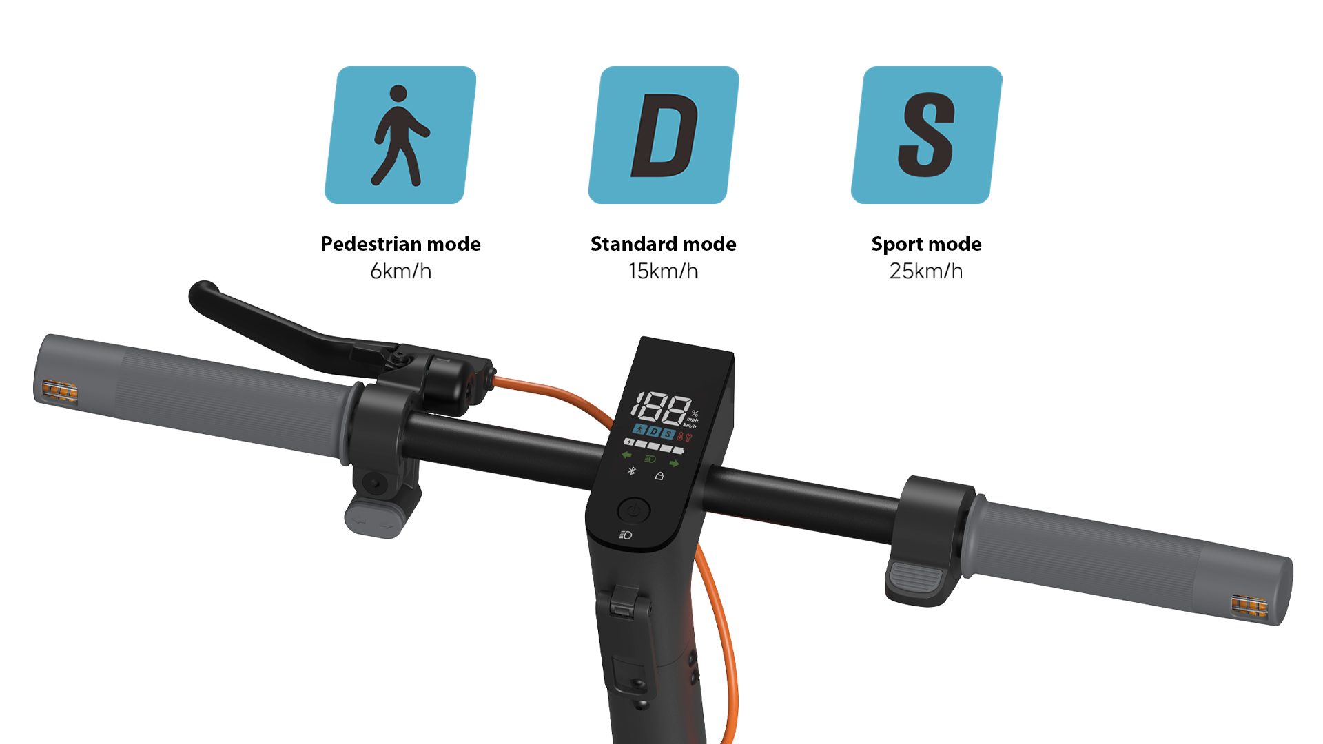 Xiaomi Electric Scooter 6 ponúka tri jazdné režimy, ktoré vám umožnia mať jazdu plne pod kontrolou v každej situácii. Či už hľadáte komfortnú rýchlosť pre jazdu v meste, klasiku pre bežné dochádzanie alebo trochu adrenalínový zážitok. Jednoducho si zvoľte ten správny režim podľa toho, kde práve jazdíte.