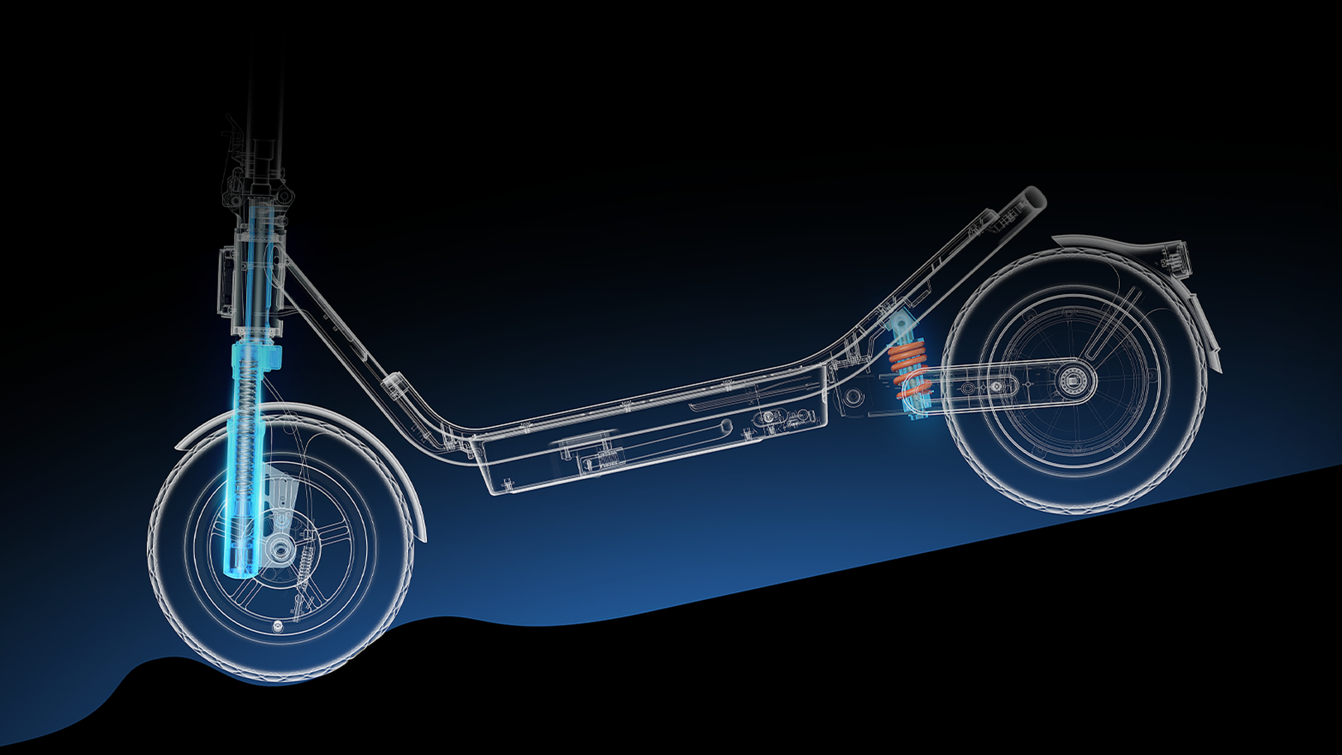 Vychutnajte si pohodlnejšiu jazdu vďaka 30mm systému predného a zadného odpruženia. Spoločne zaisťujú komfortnú jazdu a stabilitu aj v ostrých zákrutách alebo hrboľatom teréne, vďaka čomu si naplno užijete aj tie najdlhšie trasy.