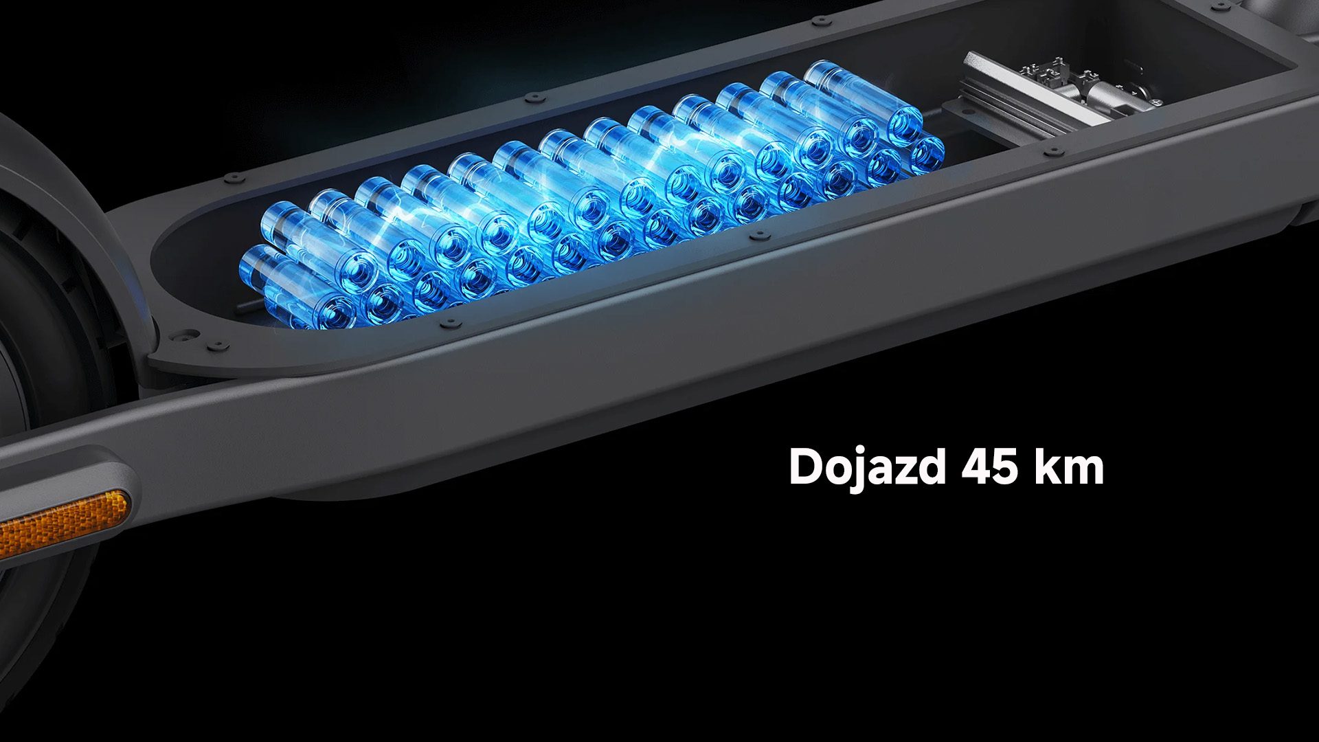 Veľká batéria s kapacitou 360Wh, poskytuje dojazd až 45km, pre bezstarostné cestovanie v okruhu 10 km.