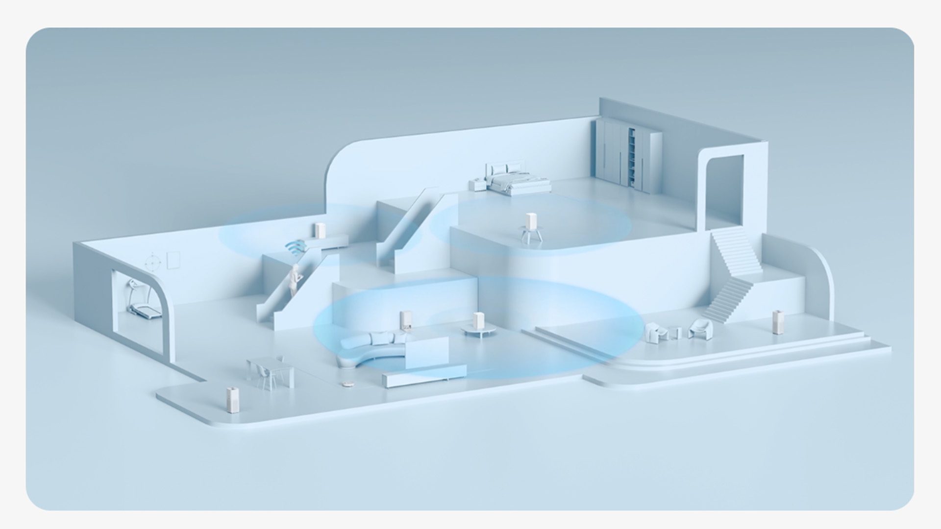 Sofistikovaný vzhľad a kompaktné rozmery bieleho minimalistického dizajnu dokonale zapadnú do interiéru vašej domácnosti. Zariadenie je vhodné najmä do veľkých domácností, kde zlepší pokrytie a oživí atmosféru vášho bývania.