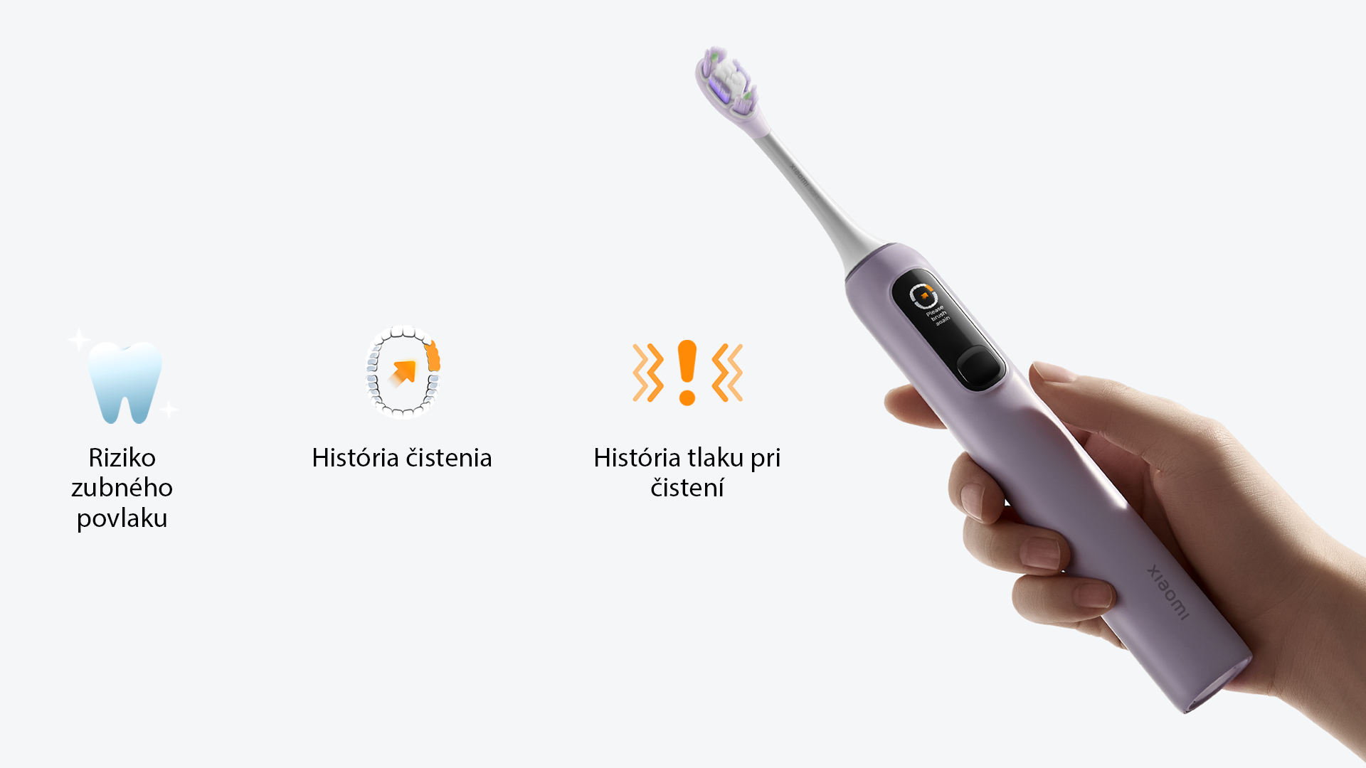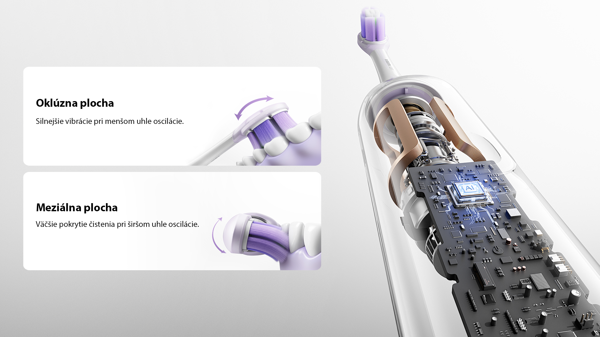 Pri použití nadmerného tlaku sa rozsvieti kontrolka a automaticky sa znížia vibrácie, aby sa zabránilo poškodeniu ďasien.