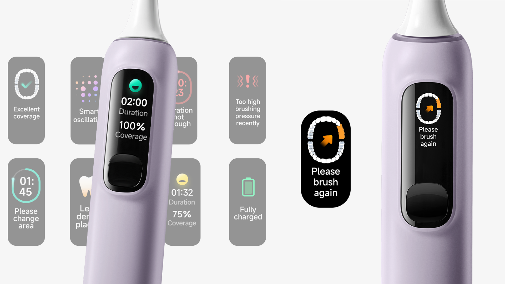 Inteligentný digitálny displej poskytuje informácie o čistení a spätnú väzbu v reálnom čase. Zubná kefka je vybavená 6-osovým senzorom, ktorý automaticky detekuje oblasť čistenia na základe orientácie zubnej kefky a uhla čistenia. Vďaka tomu vám poskytne aj prehľadnú schému čistenia zubov a upozorní vás tak na miesta ktoré neboli dôkladne vyčistené.