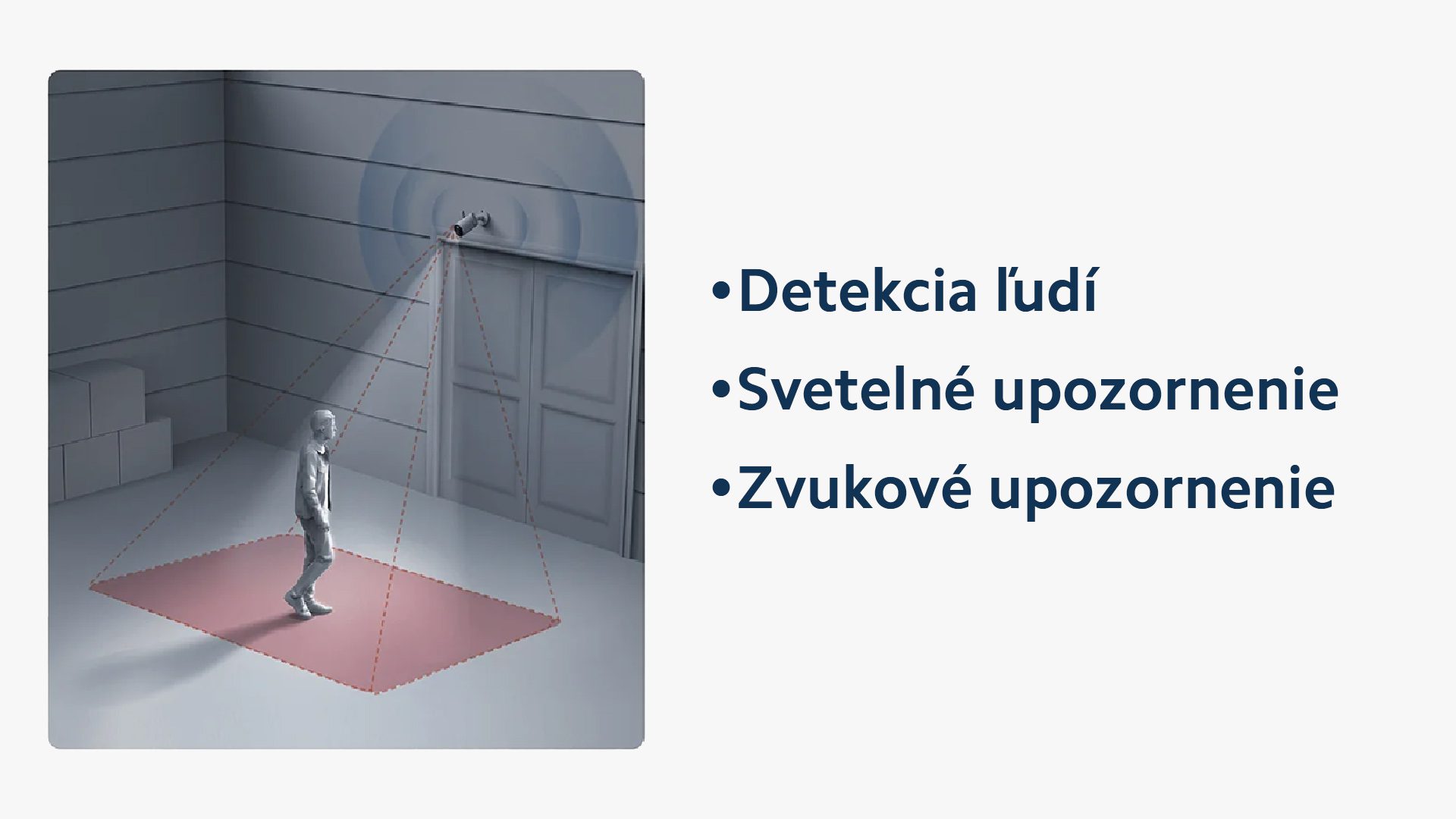 Kamera AW300 dokáže rozpoznať človeka do vzdialenosti 7 metrov. Po vstupe narušiteľa do detekčnej zóny kamera automaticky spustí zvukový alarm s vysokofrekvenčným blikaním svetiel, čím odoženie potencionálneho narušiteľa.