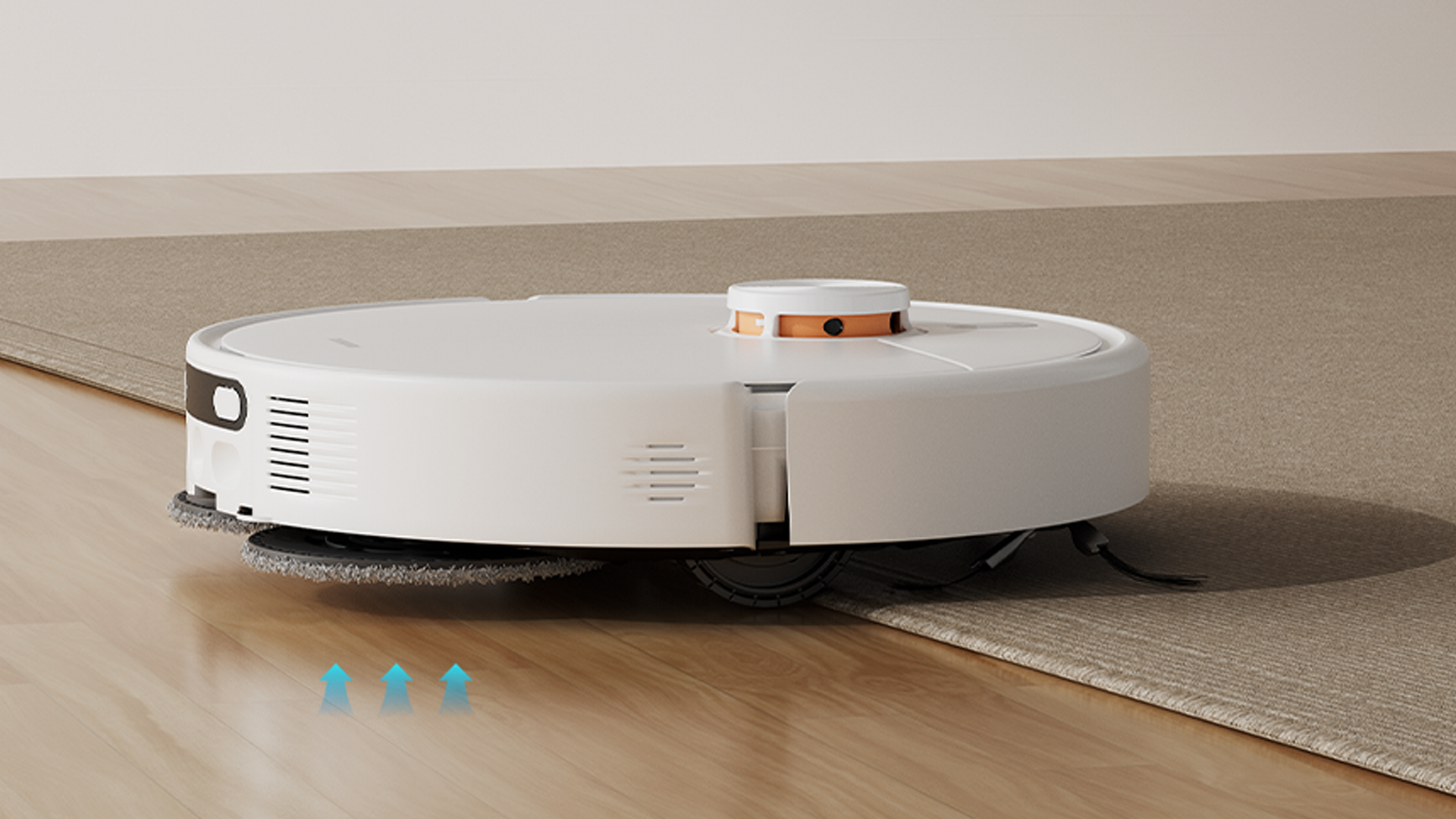 Ak v aplikácii Xiaomi Home označíte polohu kobercov, vysávač automaticky zdvihne mopovacie podložky o 10mm, aby zabránil ich namočeniu. Vďaka tomu zostane váš koberec úplne suchý. Zároveň môžete aktivovať aj funkciu automatického zvýšenia výkonu, pre čo najdôkladnejšie hĺbkové čistenie kobercov.