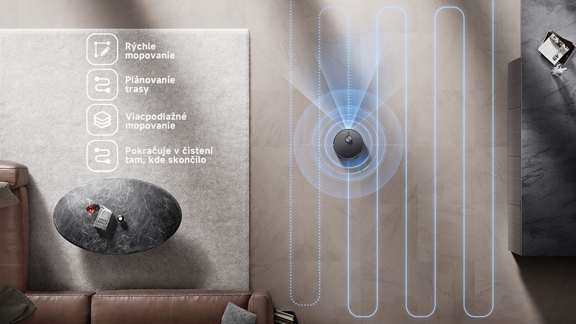 Pokročilá technológia laserovej navigácie, vysávaču umožňuje 360° skenovanie miestnosti pre rýchle zmapovanie rozloženia vašej domácnosti a presné plánovanie trasy čistenia. Ponúka štyri režimy čistenia v aplikácii Mi Home/Xiaomi Home s niekoľkými úrovňami sania a nastaviteľným prietokom vody pre rôzne potreby čistenia. Vysávanie – zvieracie chlpy, Vysávanie a mopovanie – každodenné čistenie, Mopovanie – škvrny na podlahe, Vysávanie pred mopovaním – hĺbkové čistenie