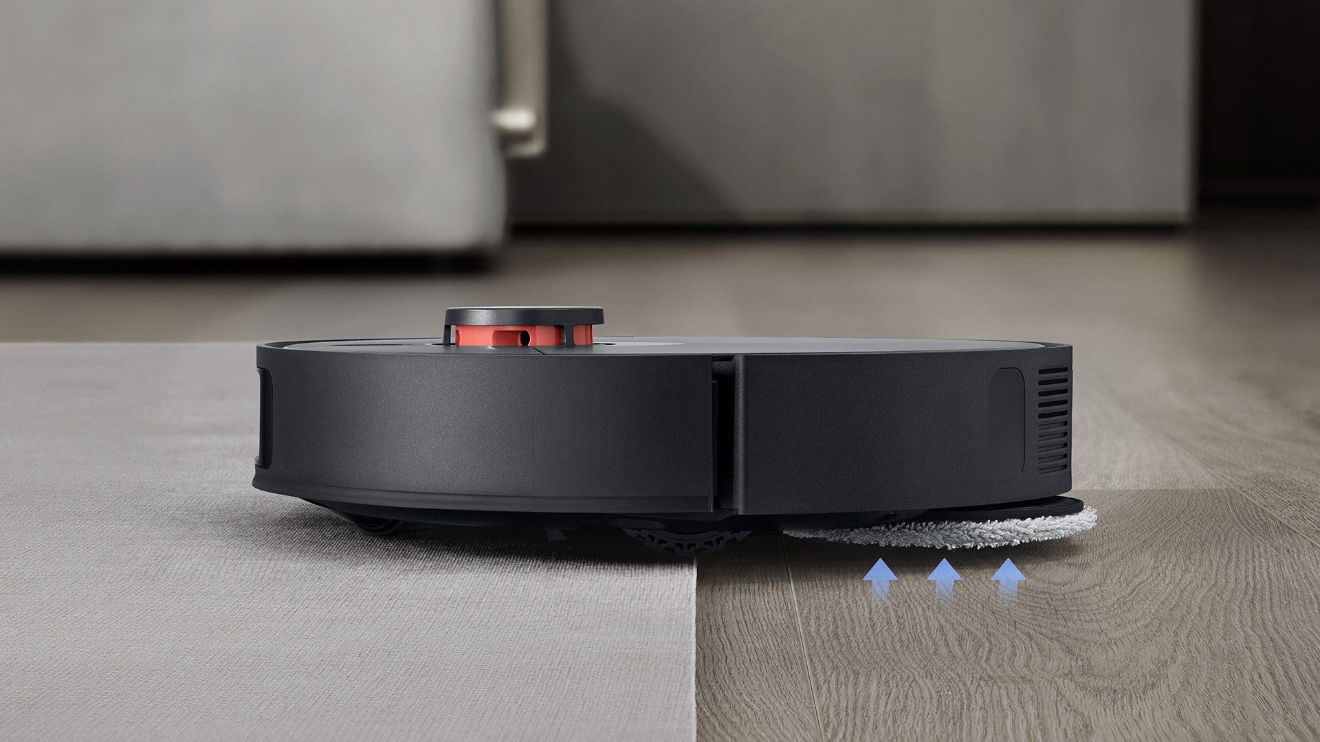 Vysávač používa ultrazvukový senzor na rozpoznávanie kobercov, ktorý automaticky zdvihne mopovacie podložky o 10mm. V režime „Carpet boost“ po zdvihnutí mopu automaticky aktivuje silnejšie sanie, aby účinne vysal vlasy a prach z hĺbky koberca bez toho, aby ho namočil. *Ak je koberec hrubší ako 8 mm, s dlhým vlasom, alebo strapcovitý, používateľom odporúčame, aby v aplikácii Mi Home/Xiaomi Home zvolili režim „Vyhýbanie sa kobercom“.