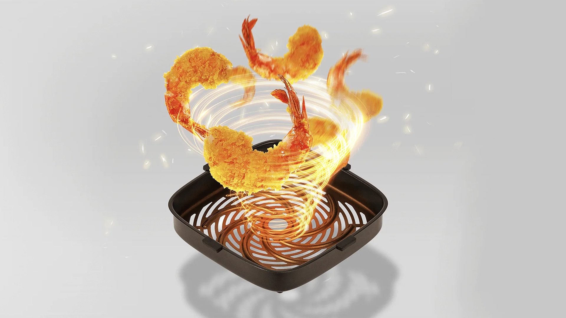 Cirkulárne prúdenie vzduchu, zohrieva jedlo z vnútra a rovnomerne čim zachováva šťavnatosť a plnú chuť potravín a uvoľňuje prebytočný olej, tuk a mastnotu, aby ste si mohli vychutnať zdravé a chrumkavé pokrmy s minimom oleja.