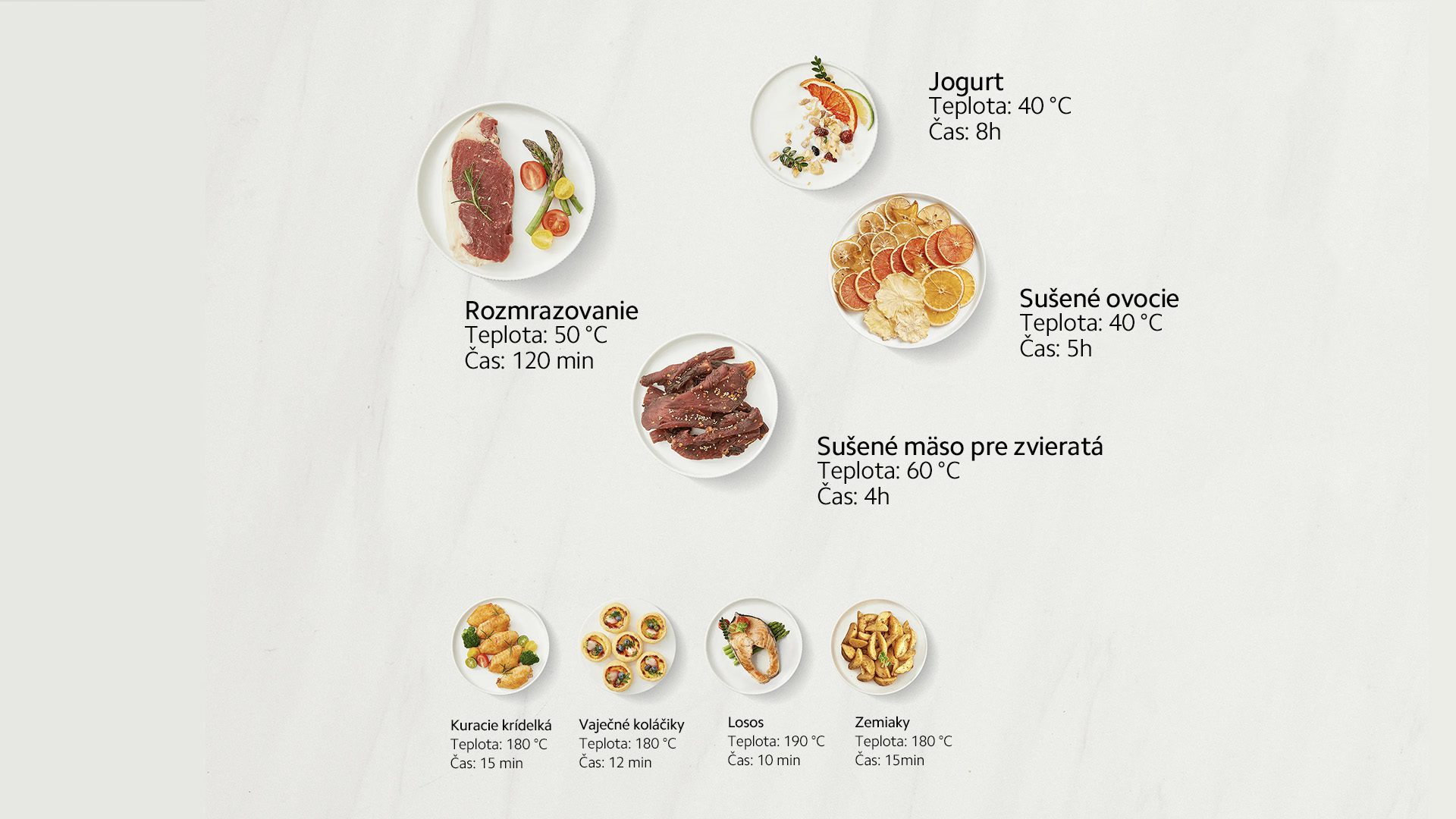 Vďaka prednastaveným receptom vás od profesionálneho šéfkuchára delí len niekoľko ťuknutí. Teplotu aj dĺžku pečenia si samozrejme môžete prispôsobiť aj podľa vlastnej chuti.
