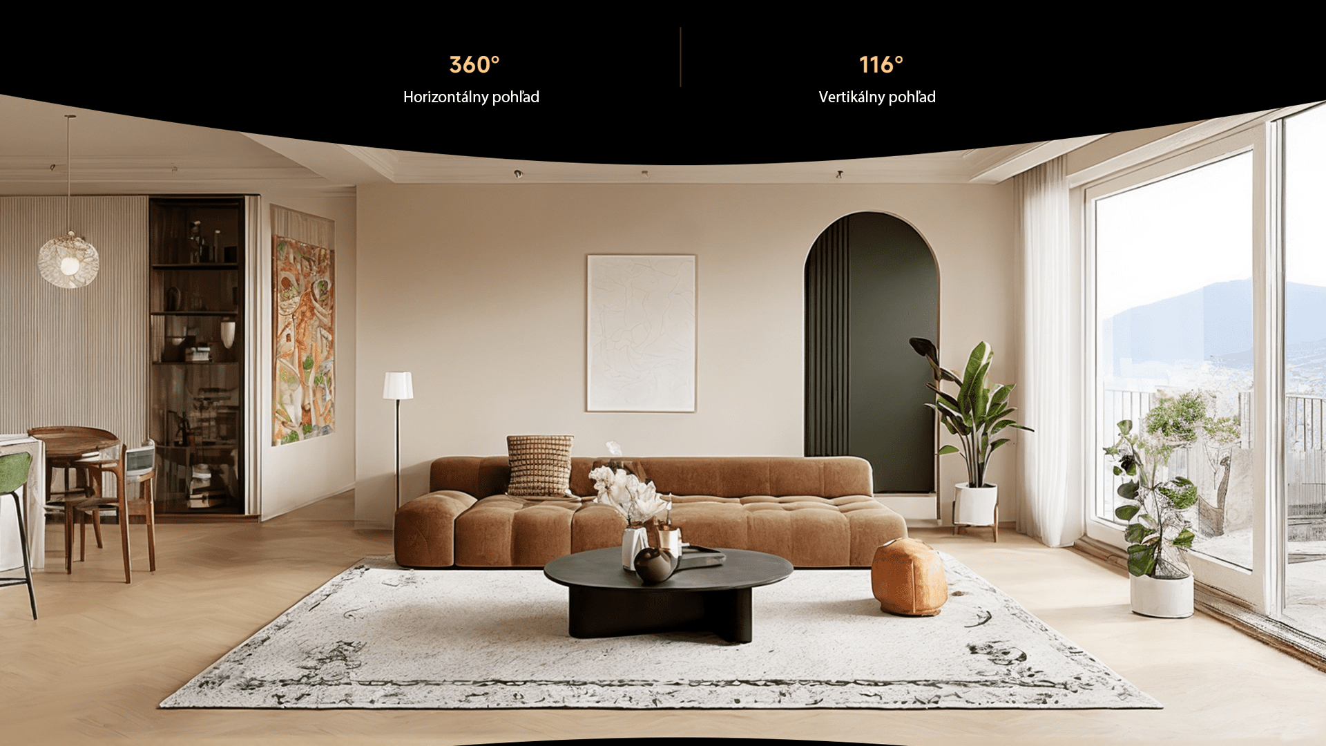 Kamera umožňuje 360° horizontálne a 116° vertikálne ovládanie pomocou smartfónu a otáčanie v ľubovoľnom smere vďaka motoru s dvojosovým otáčaním pre komplexné monitorovanie vašej domácnosti.