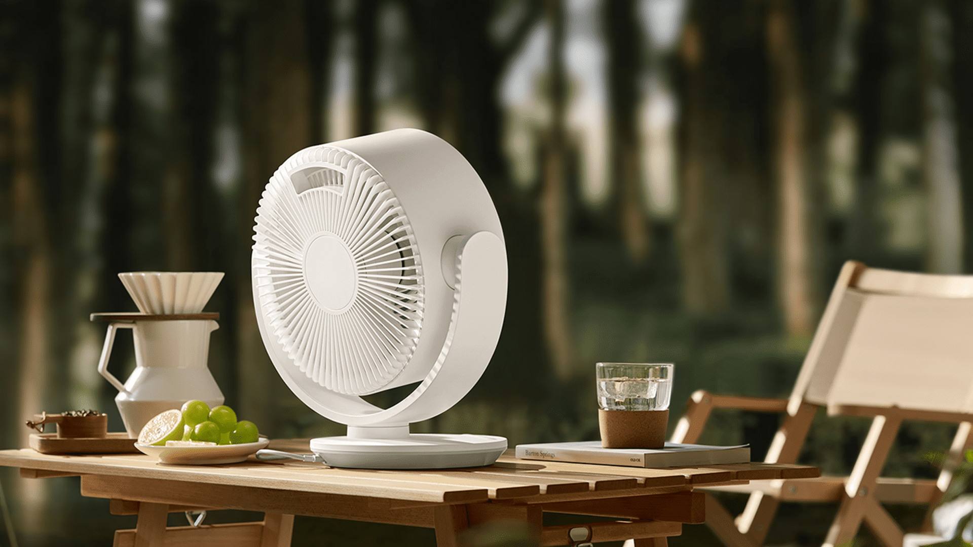 Tento kompaktný ventilátor vďaka svojim rozmerom zaberá minimum priestoru a jeho základňa vám zaberie približne toľko čo A5 hárok papiera. Prakticky umiestnená rukovať na zadnej strane uľahčuje prenášanie a manipuláciu s ventilátorom, aby ste mohli zostať v chlade, nech ste kdekoľvek.