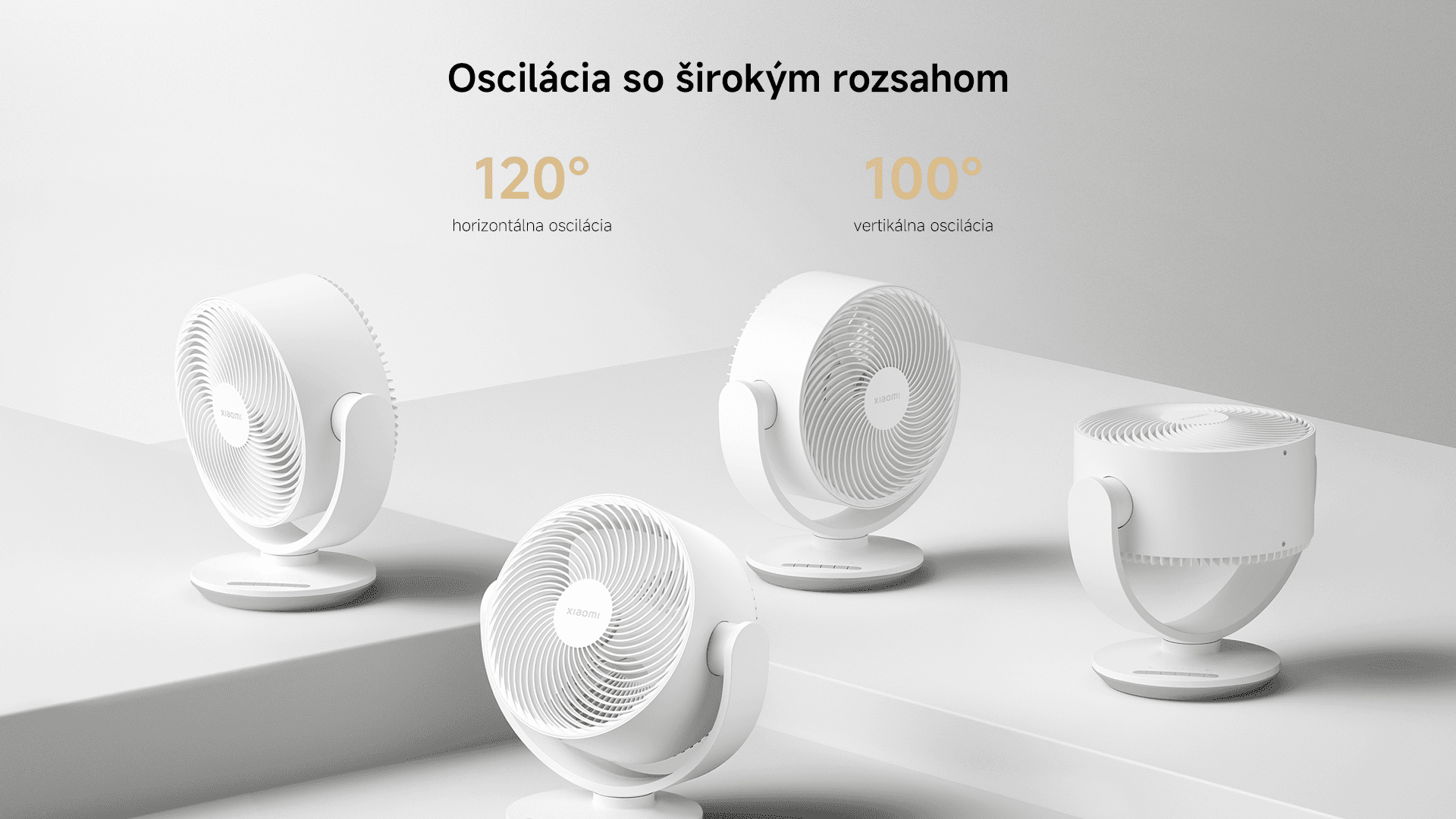 Vďaka širokému rozsahu oscilácie sa ventilátor automaticky otáča v rozsahu 120° (horizontálne) a 100° (vertikálne). Vďaka obojsmernej oscilácií ponúka široké možnosti a väčšiu flexibilitu použitia.