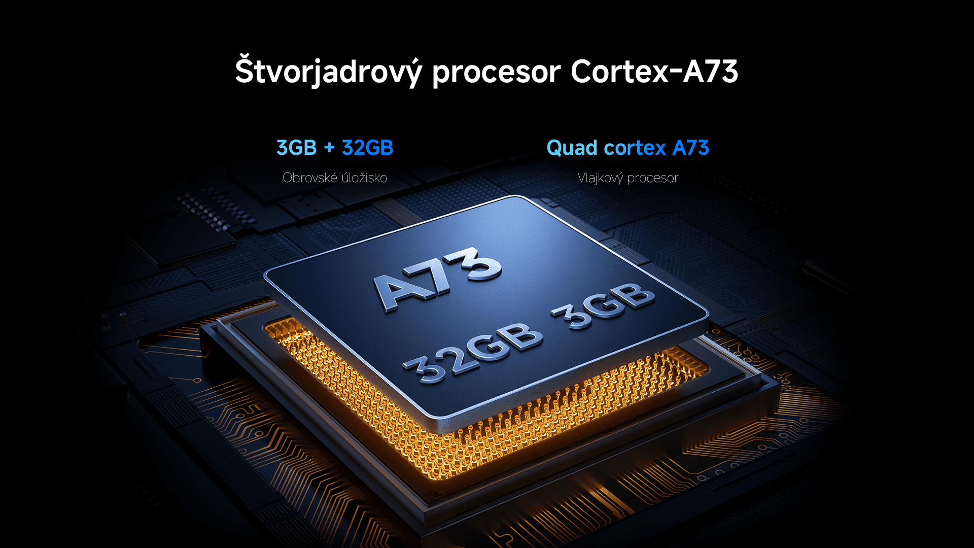 Vlajkový procesor Quad-core A73 zlepšuje kvalitu obrazu pomocou technológií AI PQ a AI SR a zvláda úlohy rýchlo a jednoducho. Mimoriadne veľký úložný priestor 32GB umožňuje neobmedzené sťahovanie veľkých aplikácií.